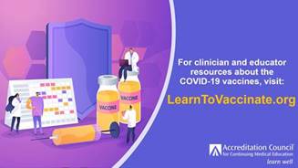 At learntovaccinate.org there are 50 activities posted, with more being submitted each day, by accredited organizations. Clinicians can search by topic, organization, type of credit (AMA PRA, nursing, pharmacy, interprofessional), and format. In addition to the scientific basis and history of the COVID-19 vaccines, the materials also help clinicians learn how to effectively implement and safely deploy a vaccination strategy in their communities and address this national health crisis.